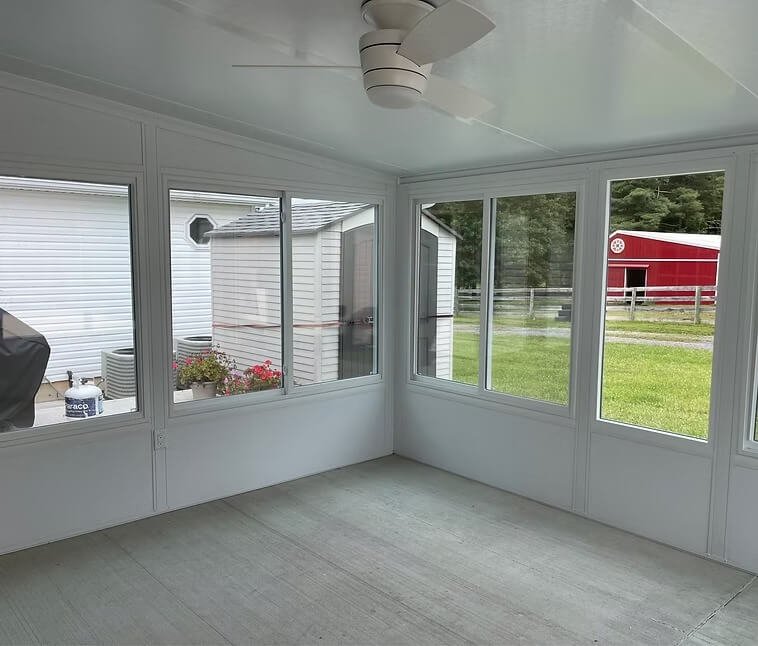 Enjoy the views around your home with this solid roof option. Optional skylights are available and these rooms feature large sliding or picture windows with optional glass kick panels, solid kick panels or you can utilize a knee wall. Sliding or swing style doors are available with this option as well. Glass transoms above the doors and windows are optional as well.