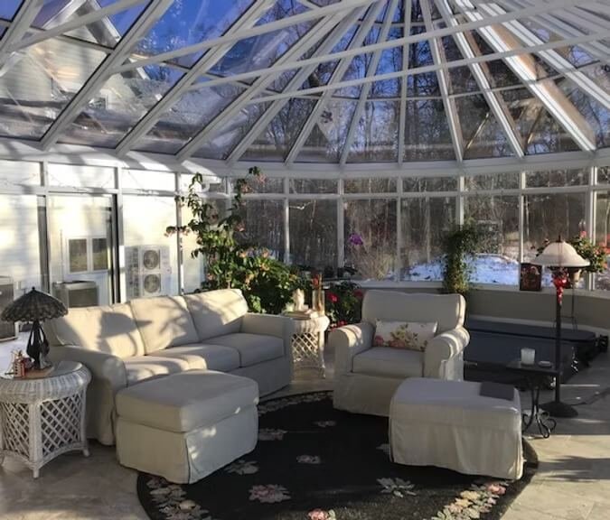The Victorian style conservatory is a beautiful addition to our room options. This full glass room has the option of glass or solid kick panels & optional glass transoms above the windows. You can choose between large sliding windows, large picture windows and/or swing or sliding glass doors. This room is a full aluminum frame design, however this room is also available in a wooden interior frame. Contact us for some more details.